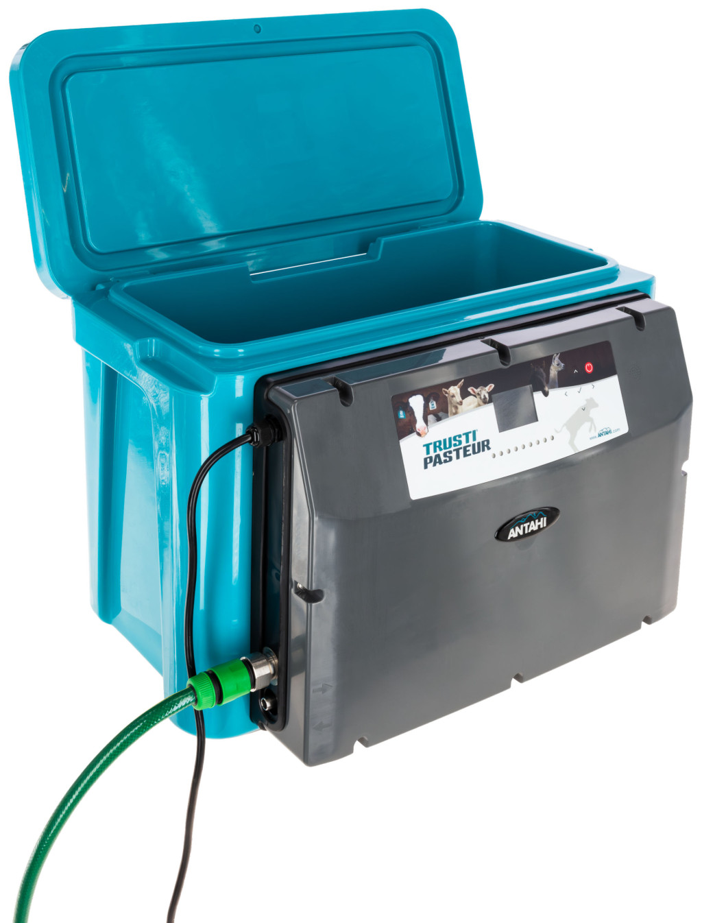Szállítási tartalom: 1 db pasztőröző, 1 db zacskótartó, 1 db leeresztőtömlő (83 cm), 1 db gyorscsatlakozó az automatikus vízellátáshoz, 5 db Trusti kolosztrum zacskó (különböző méretek), 1 db Trusti Tuber drencs