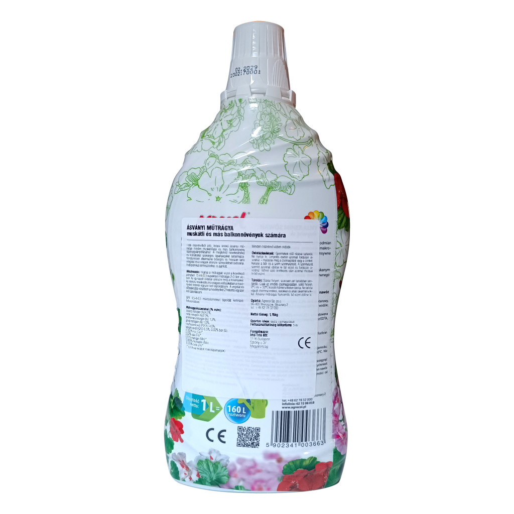 • Folyékony, többkomponensű ásványi műtrágya, amelyet mindenféle muskátli és egyéb erkélynövény számára terveztek. A gondosan válogatott makro- és mikrotápanyagok aránya bőséges és tartós virágzást, valamint intenzív virágszínt biztosít.