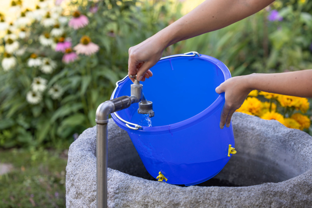 Baromfi itatóvödör - áttetsző kék, 12 l, 4 itatókivezetéssel