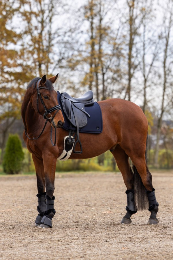 Az ínvédő optimális védelmet és maximális kényelmet biztosít lova lábának. A praktikus tépőzáras kialakítás ideális illeszkedést biztosít, míg a puha műszőr szélek kellemes védelmet biztosítanak a kidörzsölés ellen.