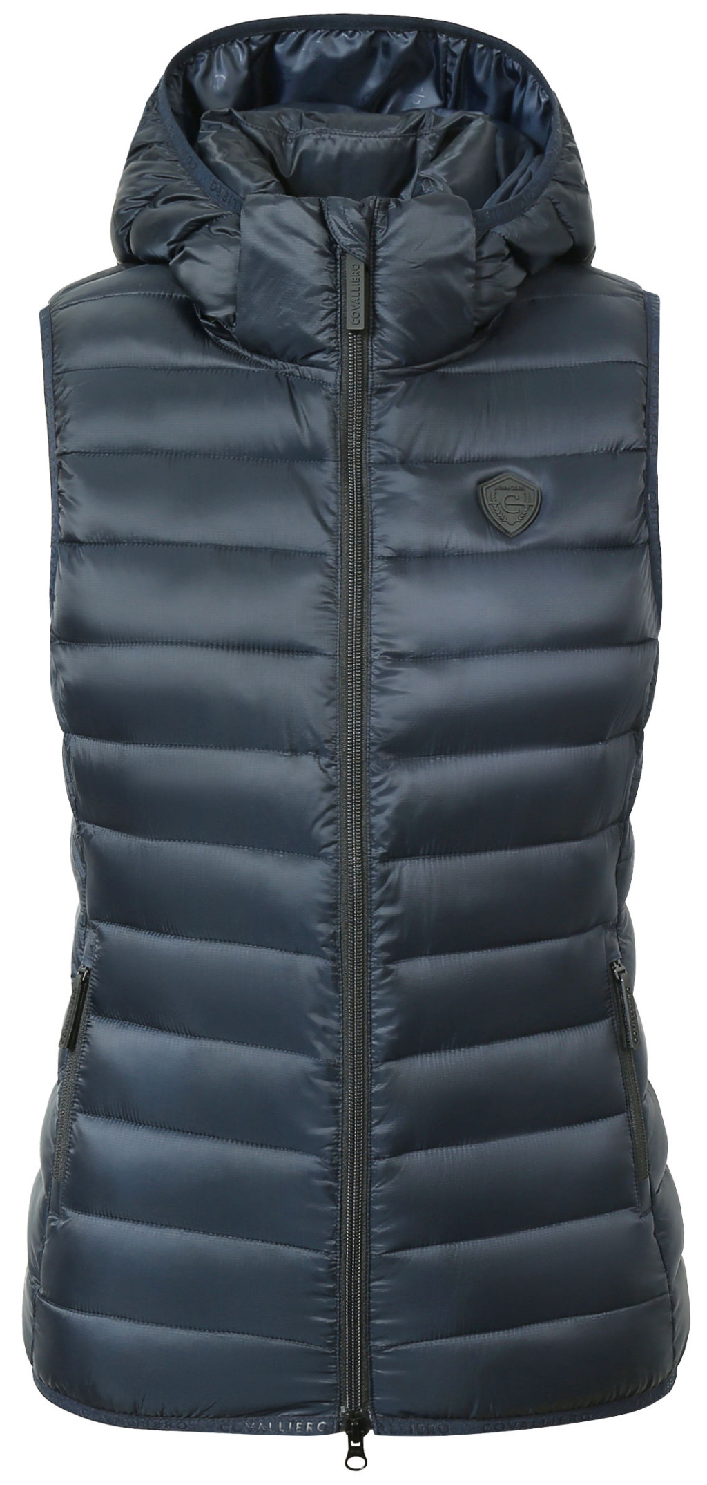A steppelt mellény, levehető kapucnival igazán megnyerő - általános viselet, meleget és stílust biztosít. A klasszikus vonalvezetés teszi a mellényt időtálló, kötelező darabbá minden lovas számára. Mosógépben 30 °C-on mosható, két praktikus zsebbel felszerelt.