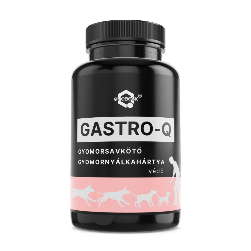 A GASTRO-Q por formájú, komplex összetételű kiegészítő állateledel kutyák számára, amely a gyomor sav-egyensúlyának fenntartását, a nyálkahártya komfortját és az emésztőrendszer általános jólétét támogatja.