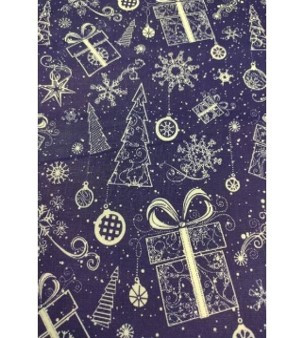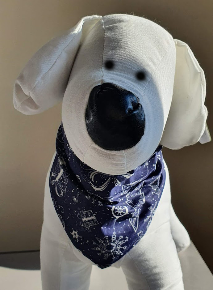 Kék színű, karácsonyi mintás pamutvászon kendő kutyáknak - méret: L