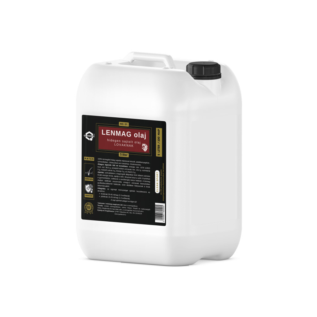 5 liter lenmagolaj egy átlagos, 500 kg testtömegű ló esetén körülbelül 100 napra elegendő.