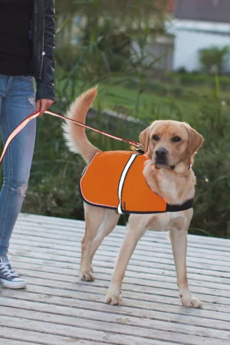• neon színű biztonsági mellény, fényvisszaverő csíkokkal