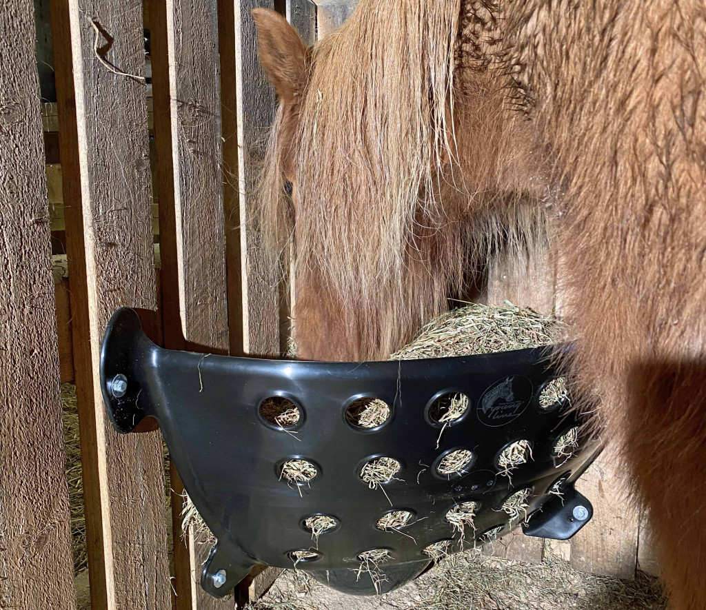 A szénaetetőt kis és nagyméretű lovaknál egyaránt használhatják.