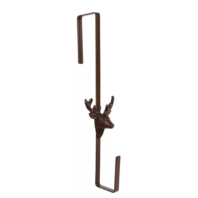 Ajtóra szerelhető stílusos ajtódísz tartó, szarvassal. Segítségével stabilan tarthatjuk az ajtónkra tett díszt. Öntöttvas jellegéből adódóan, kinti használat esetén a korrózió megjelenésével egy patinásabb, rusztikusabb termék válik belőle. Az akasztó rész maximum 5 cm vastagságú/mélységű ajtóra akasztható.