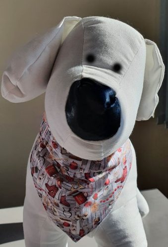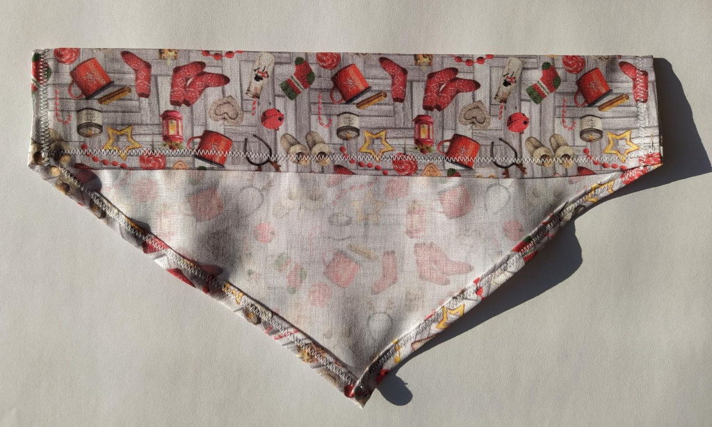 • Nyakörvre rögzíthető, ünnepi hangulatú, mintás pamutvászon kendő kutyáknak 3 méretben.