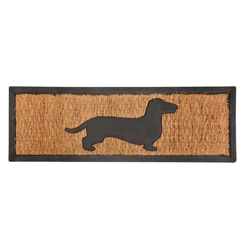 Tacskó mintás gumi lábtörlő kókuszrost betéttel, amelynek belső része a kókuszdió külső héjából készült. Tisztítása könnyű, természetes anyagának köszönhetően kiváló folyadékfelszívó képességgel rendelkezik. Az erős kókuszrostok gondoskodnak arról, hogy a legmakacsabb szennyeződések is lekerüljelek cipőinkről. Pazar kialakítású, külső,- és belső használatra egyaránt alkalmas, a ház minden bejáratához illik. Gumi anyagából adódóan a lábtörlő nem csúszik el a helyéről.