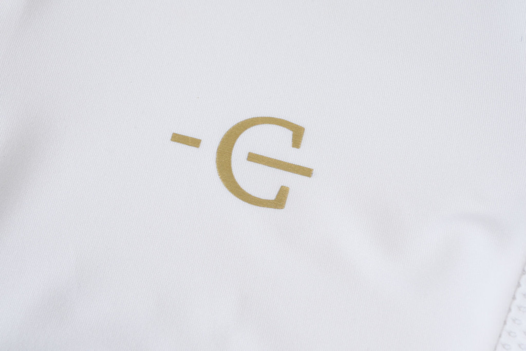 Versenypólónk ötvözi a sportos teljesítmény a stílusos megjelenéssel. A szellőző, rugalmas anyag optimális viselési kényelmet és maximális mozgásszabadságot biztosít a nyeregben. A vonalvezetés kiemeli az alakot, míg az elegáns, diszkrét csillogó kövekkel kirakott állógallér elegáns megjelenést biztosít.