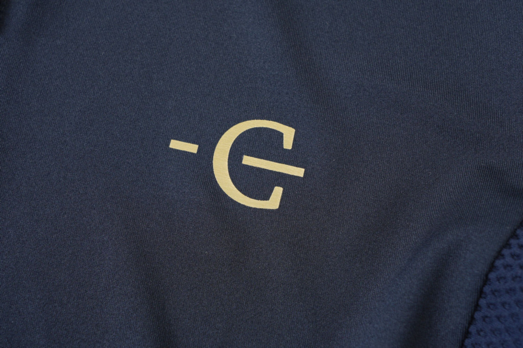 Versenypólónk ötvözi a sportos teljesítmény a stílusos megjelenéssel. A szellőző, rugalmas anyag optimális viselési kényelmet és maximális mozgásszabadságot biztosít a nyeregben. A vonalvezetés kiemeli az alakot, míg az elegáns, diszkrét csillogó kövekkel kirakott állógallér elegáns megjelenést biztosít.