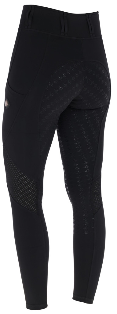 A Covalliero hálós lovagló legings övtartóval és hálós berakással a maximális kényelmet és az optimális teljesítményt nyújtja. A pehelykönnyű, szellőző anyag biztosítja az állandó szellőzést és kellemes viselési élményt edzés közben. A két oldalon található, praktikus mobiltelefontartó zseb biztosítja, hogy a telefonja mindig kéznél legyen. Formatartó, négy irányba rugalmas anyag biztosítja a megfelelő tartás és rugalmasságot a nyeregben. Az ülőrész biztonságos lovaglópozíciót garantál, az övtartók toábbi kényelmet és egyedi illeszkedést biztosítanak.