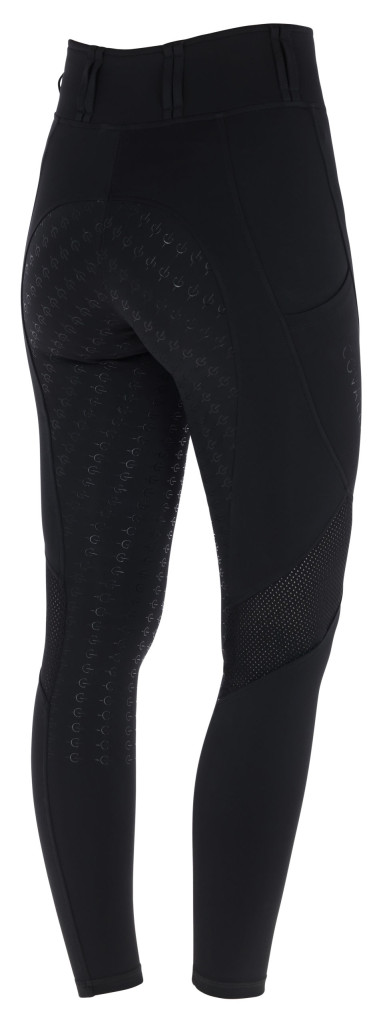 A Covalliero hálós lovagló legings övtartóval és hálós berakással a maximális kényelmet és az optimális teljesítményt nyújtja. A pehelykönnyű, szellőző anyag biztosítja az állandó szellőzést és kellemes viselési élményt edzés közben. A két oldalon található, praktikus mobiltelefontartó zseb biztosítja, hogy a telefonja mindig kéznél legyen. Formatartó, négy irányba rugalmas anyag biztosítja a megfelelő tartás és rugalmasságot a nyeregben. Az ülőrész biztonságos lovaglópozíciót garantál, az övtartók toábbi kényelmet és egyedi illeszkedést biztosítanak.