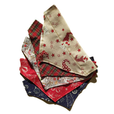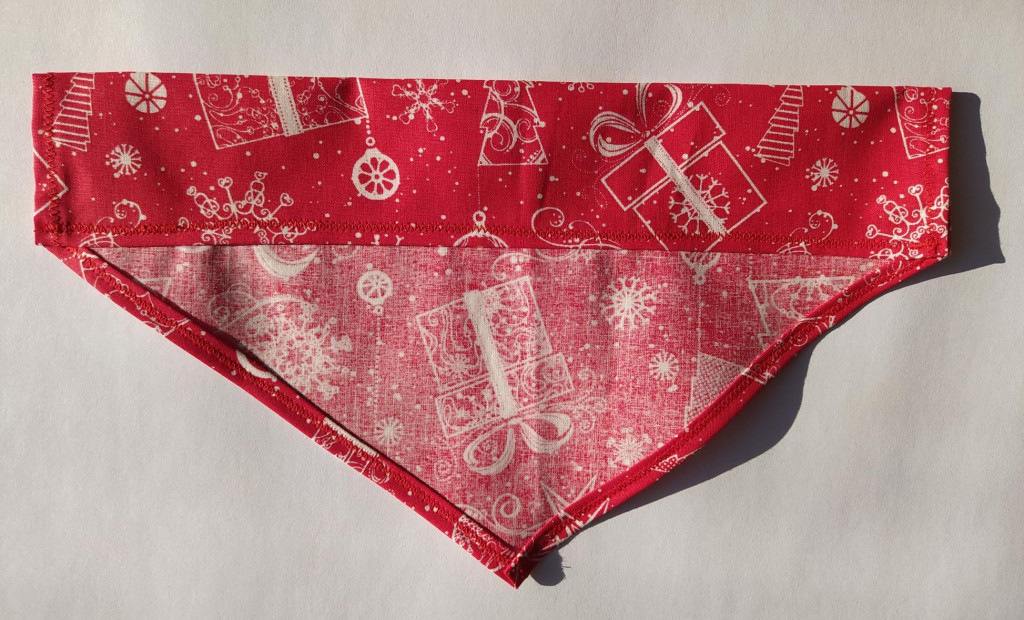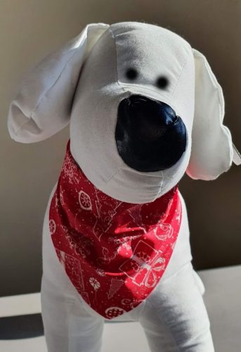 • Nyakörvre rögzíthető, ünnepi hangulatú, mintás pamutvászon kendő kutyáknak 3 méretben.