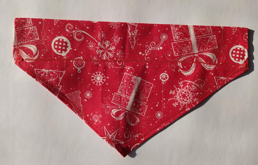 Piros színű, karácsonyi mintás pamutvászon kendő kutyáknak - méret: M