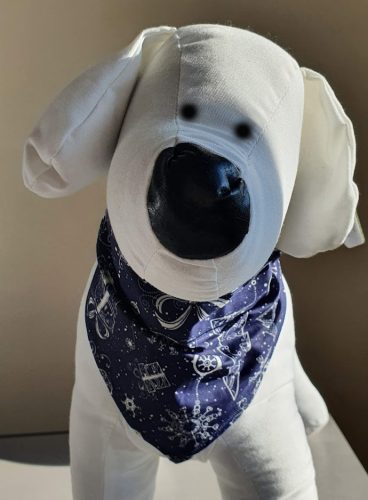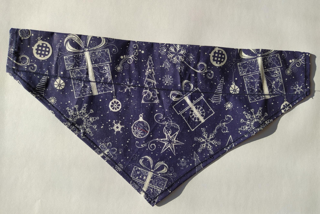 Kék színű, karácsonyi mintás pamutvászon kendő kutyáknak - méret: M
