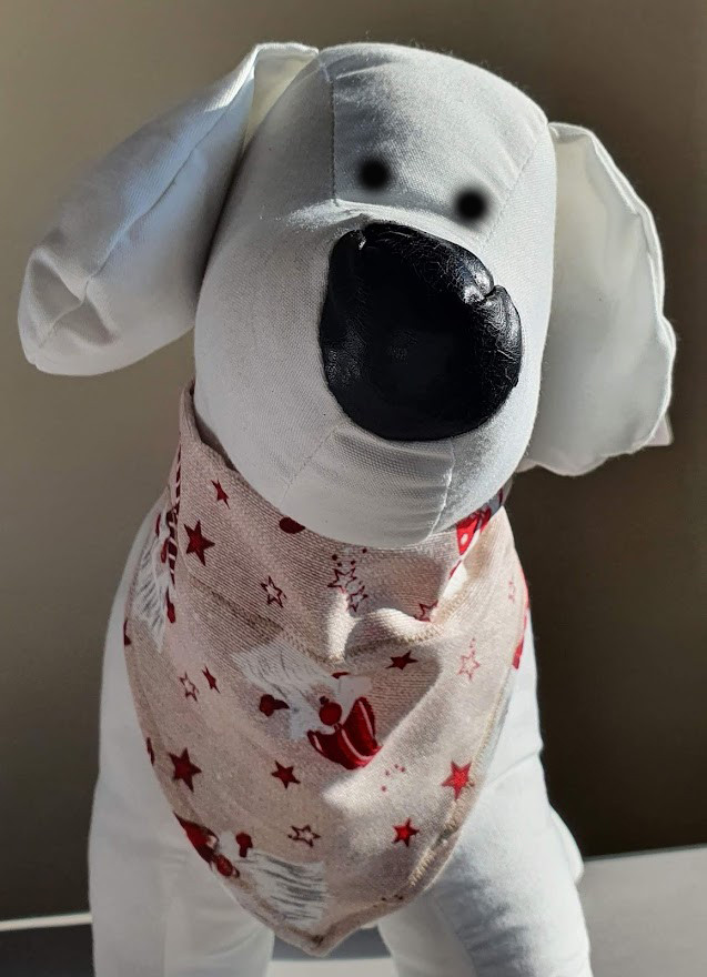 • Nyakörvre rögzíthető, ünnepi hangulatú, mintás pamutvászon kendő kutyáknak 3 méretben.