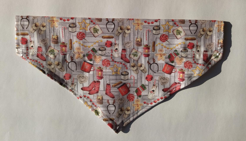 • Nyakörvre rögzíthető, ünnepi hangulatú, mintás pamutvászon kendő kutyáknak 3 méretben.