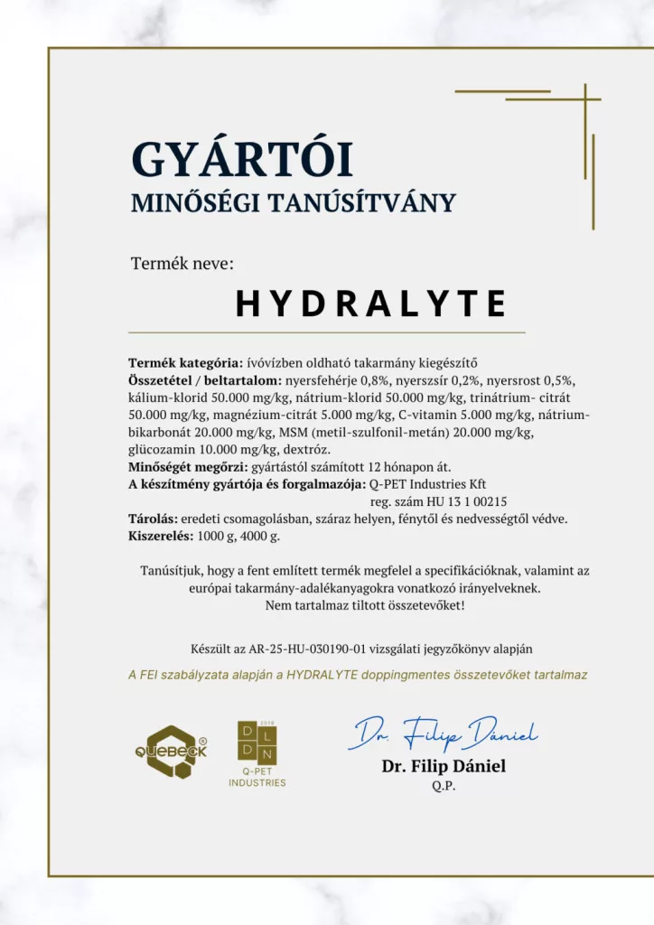 A HYDRALYTE összeállítása során a gyártó figyelembe vette mindazon izomszövet- és sejtszíntű fiziológiai folyamatokat, amelyek egy intenzív terhelés után, izzadás következtében a ló szervezetében történnek. A HYDRALYTE széles körű hatásainak köszönhetően, segíthetünk a lovak regeneráció folyamataiban, lerövidítve azt, gyorsítva a regenerálódáshoz szükséges időt.